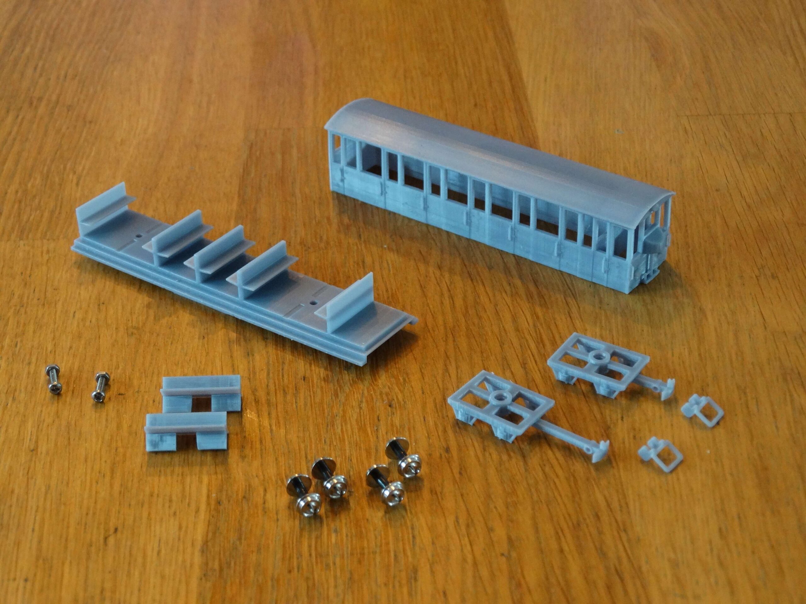- 2 bogies composés d’atelages à boucle, d’essieux métalliques et de vis de fixations métalliques
